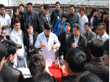 “振興長毛兔生產研討培訓會”在我場培訓人工授精現場