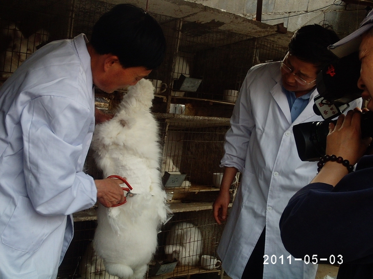 電視臺現場采訪山東省蒙陰鑫華種兔場廠長公為迎